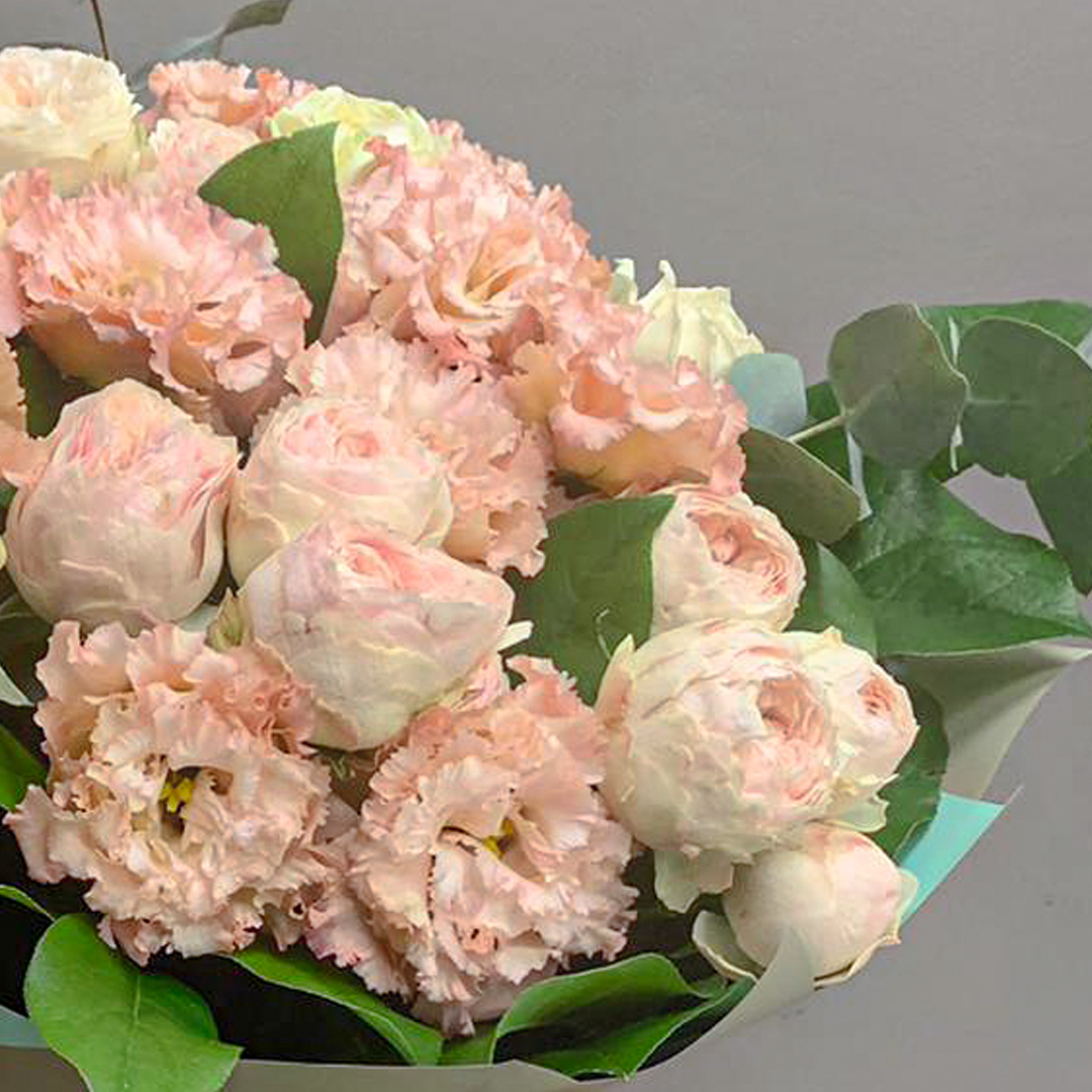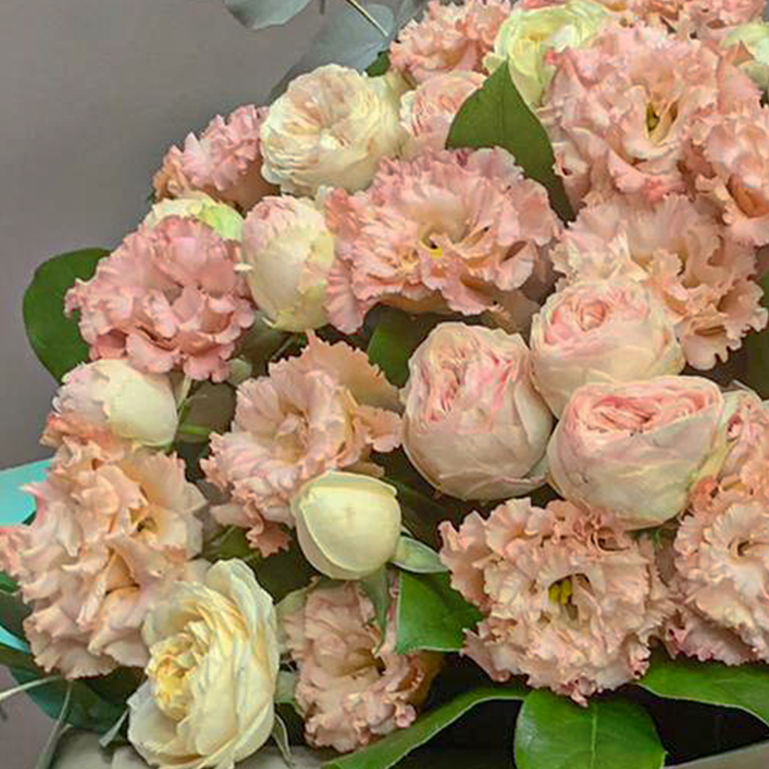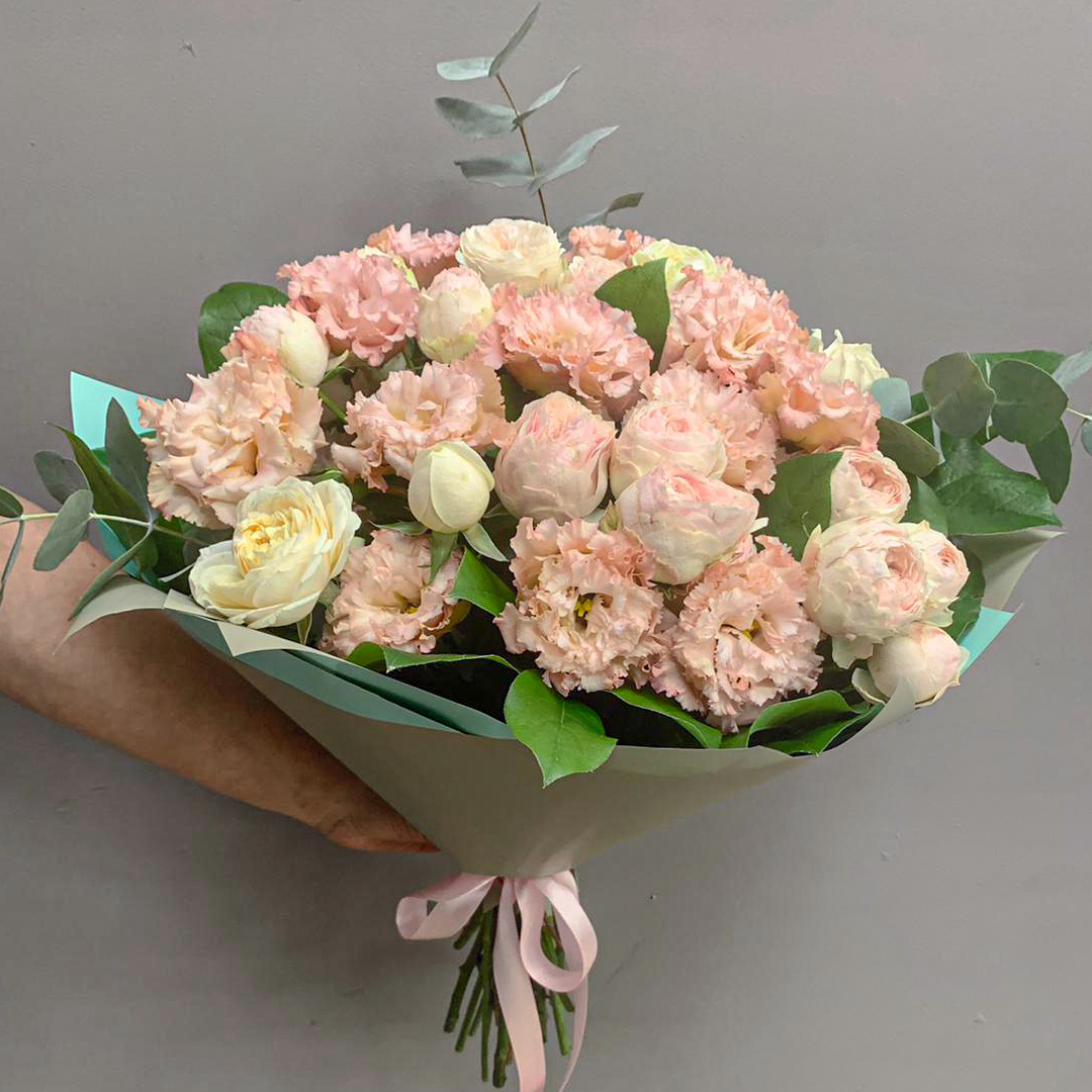 Букет "Ванильный пломбир" из кустовых пионовидных роз и эустомы арт. 45006