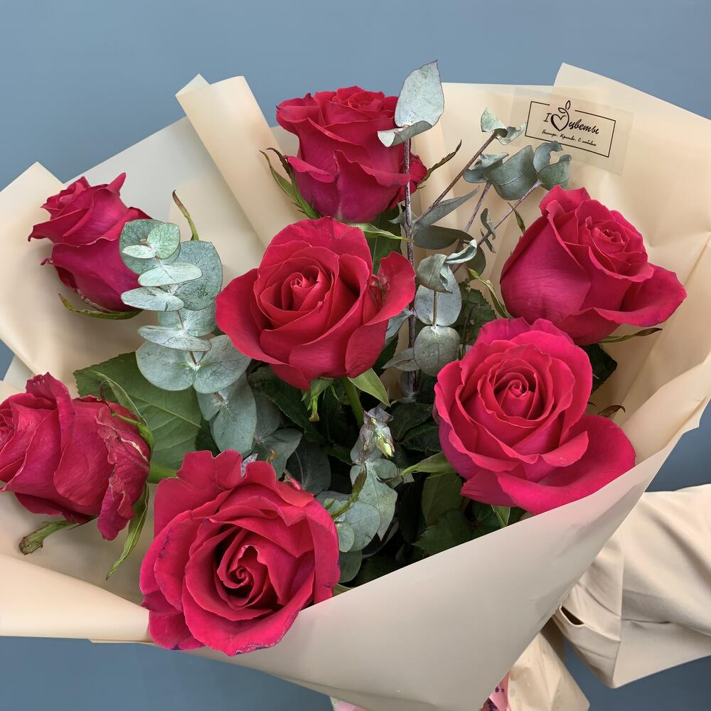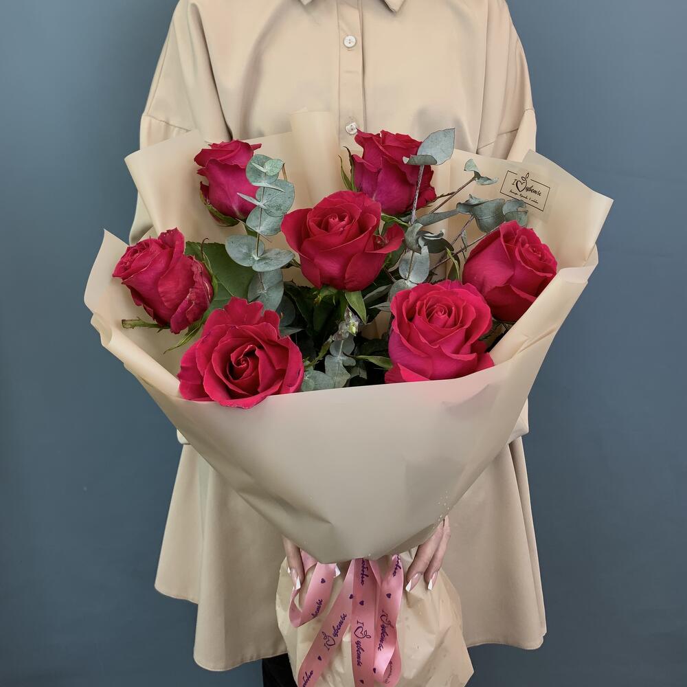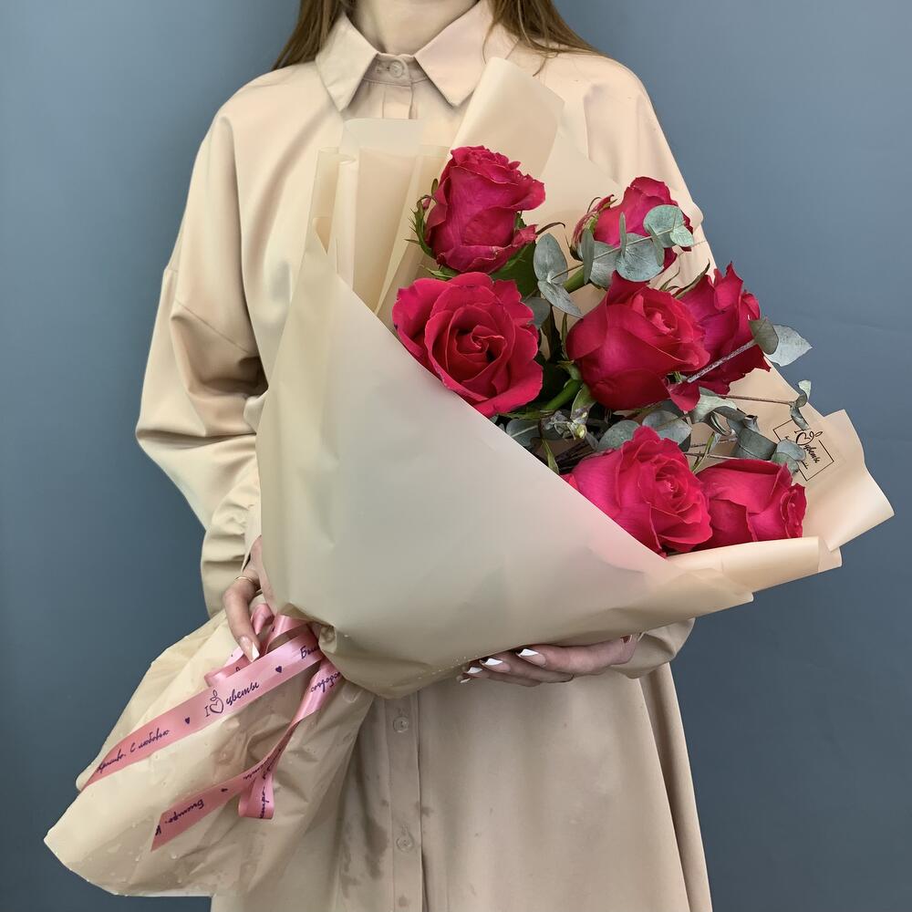 Букет из Кенийских розовых роз с эвкалиптом арт. 28447-Э