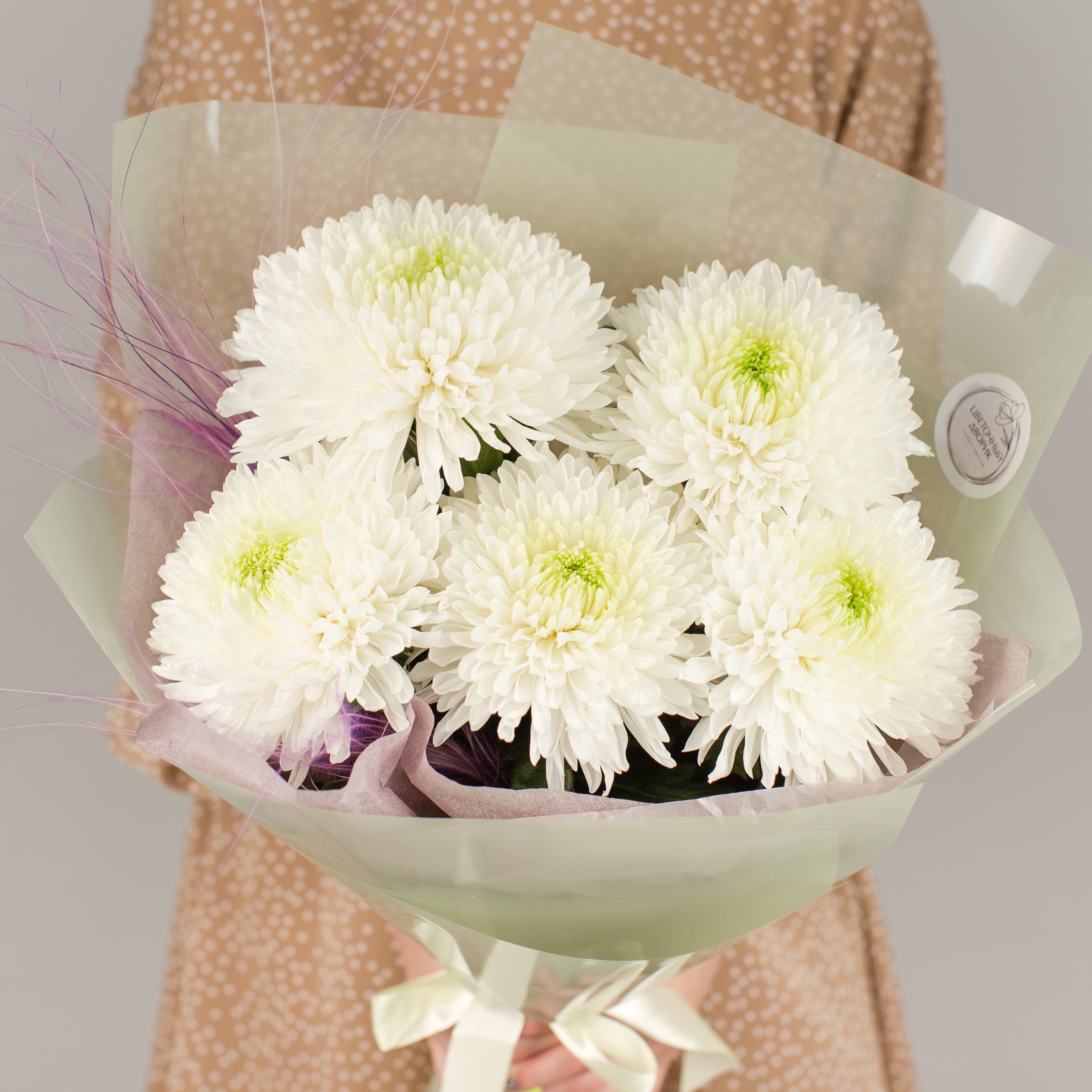 Букет из одноголовых белых хризантем с сухоцветами 50443
