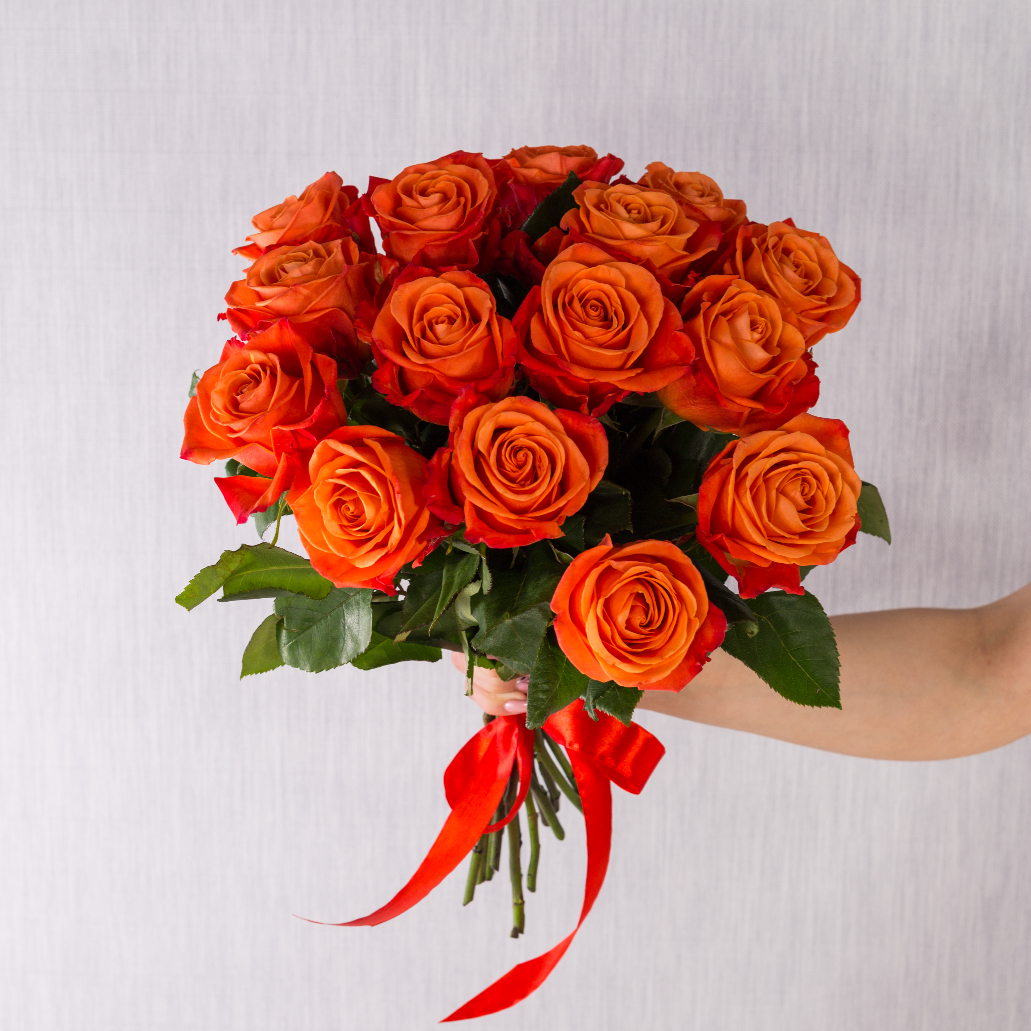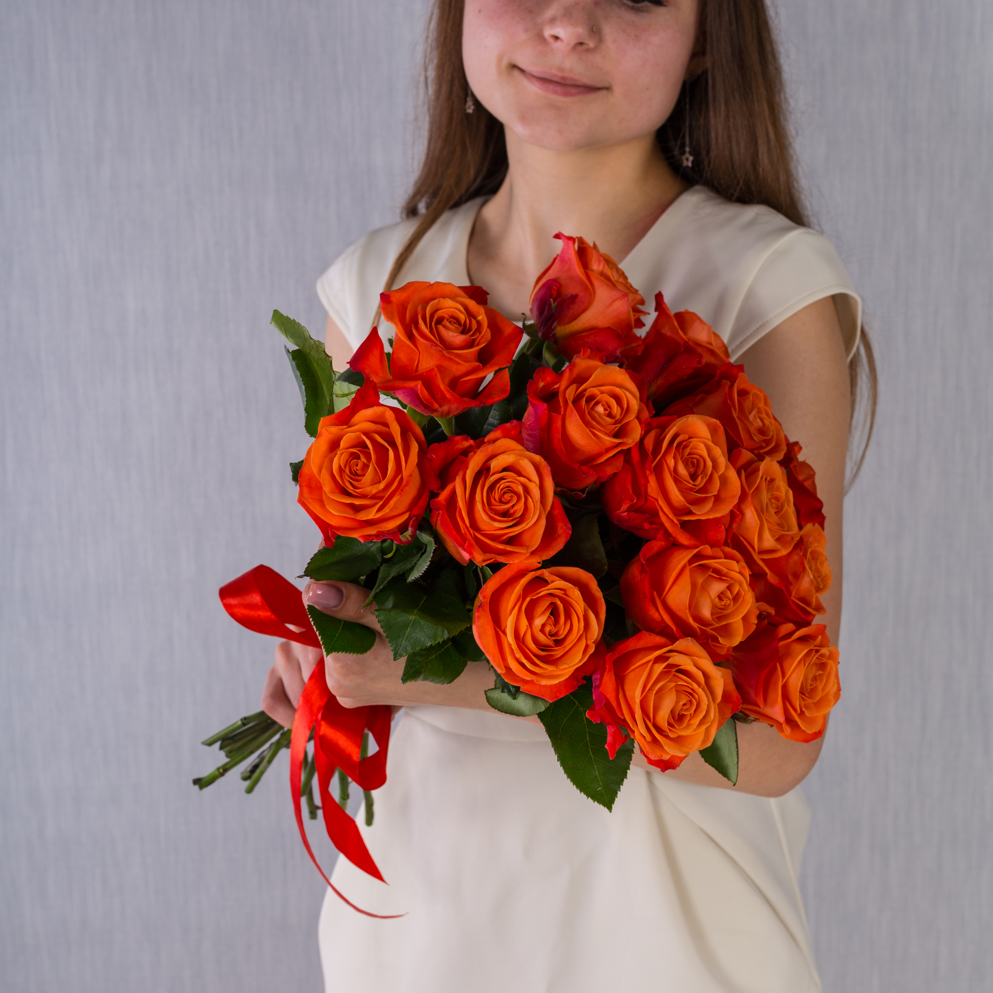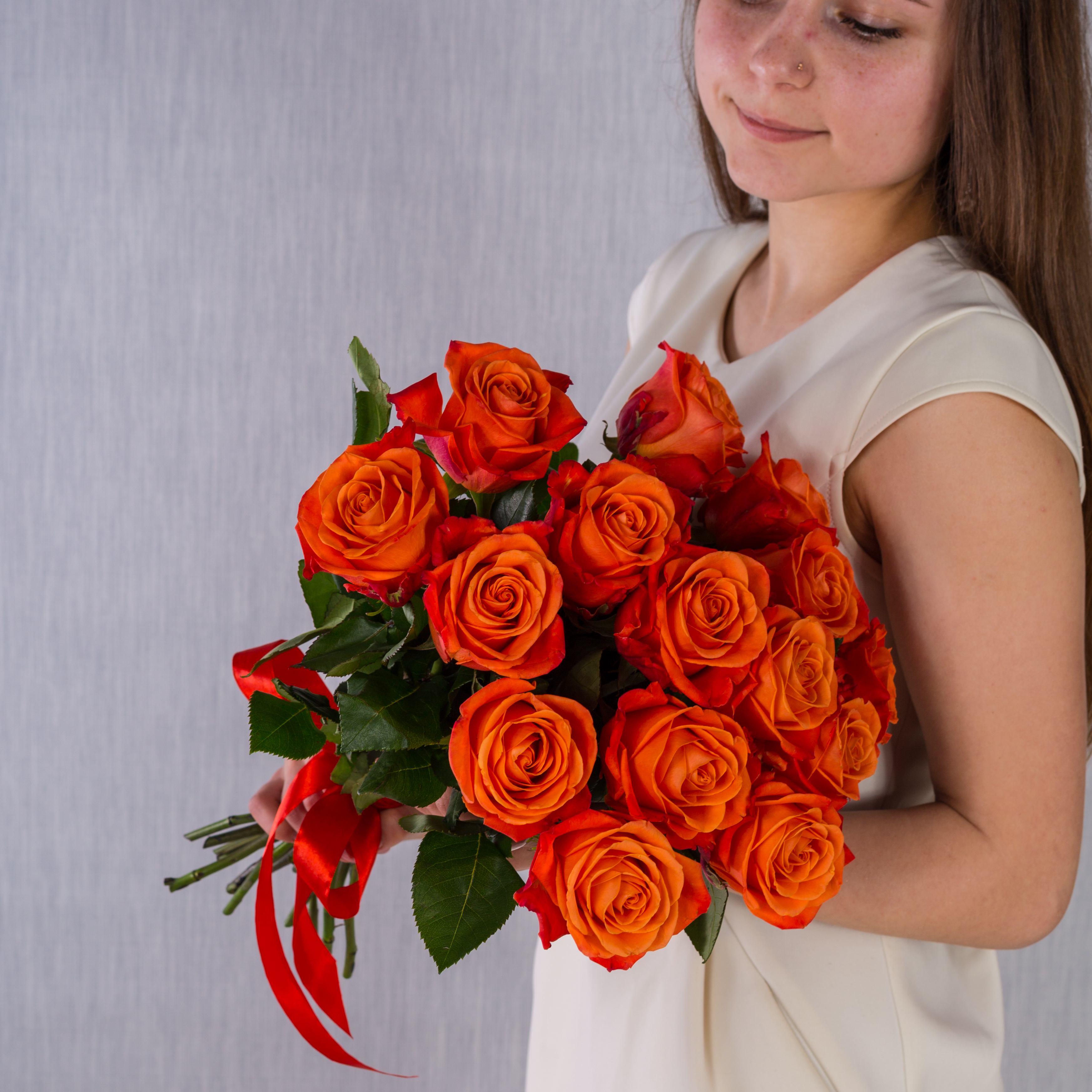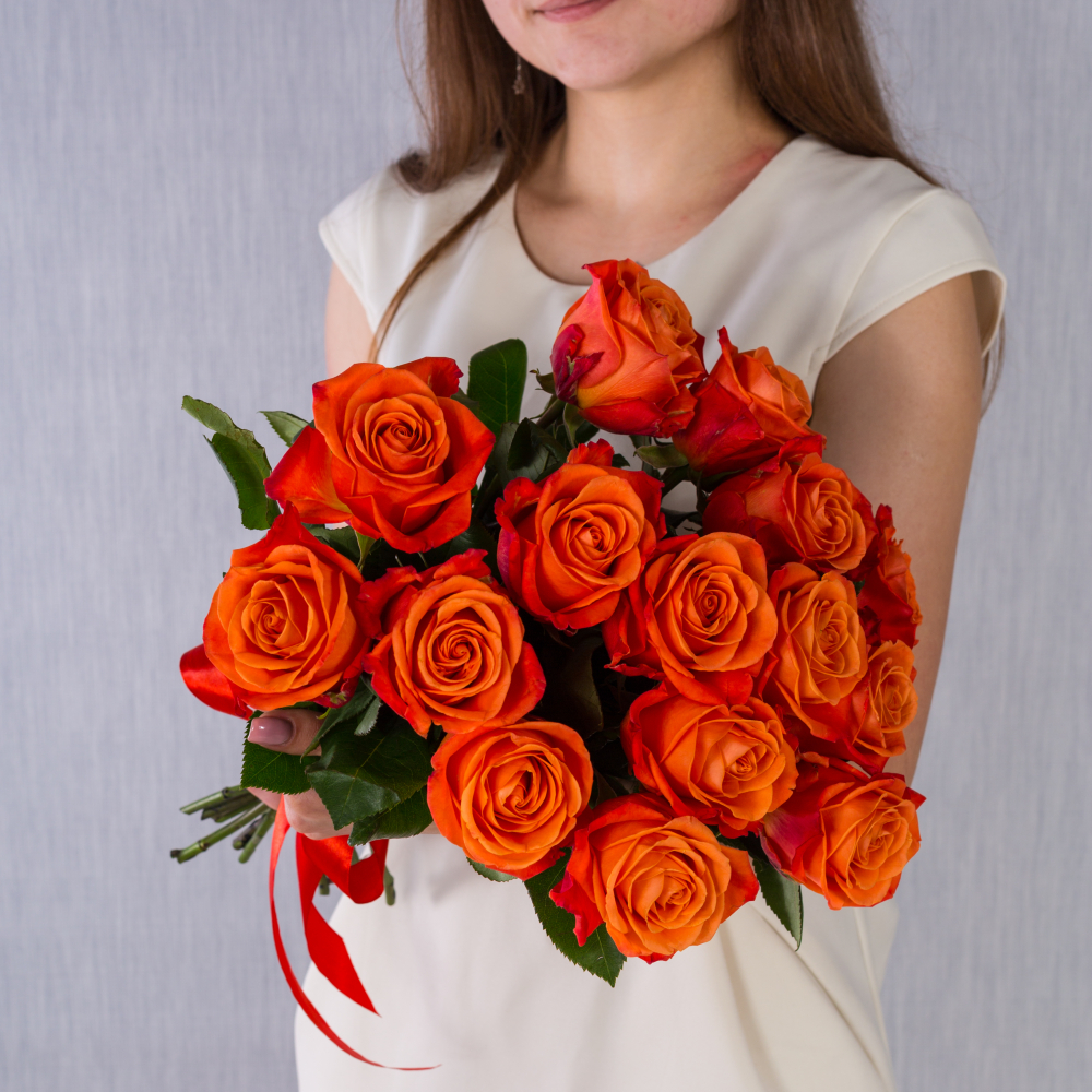 Букет из 15 оранжевых Эквадорских роз 40 см. с крупным бутоном арт. 50564